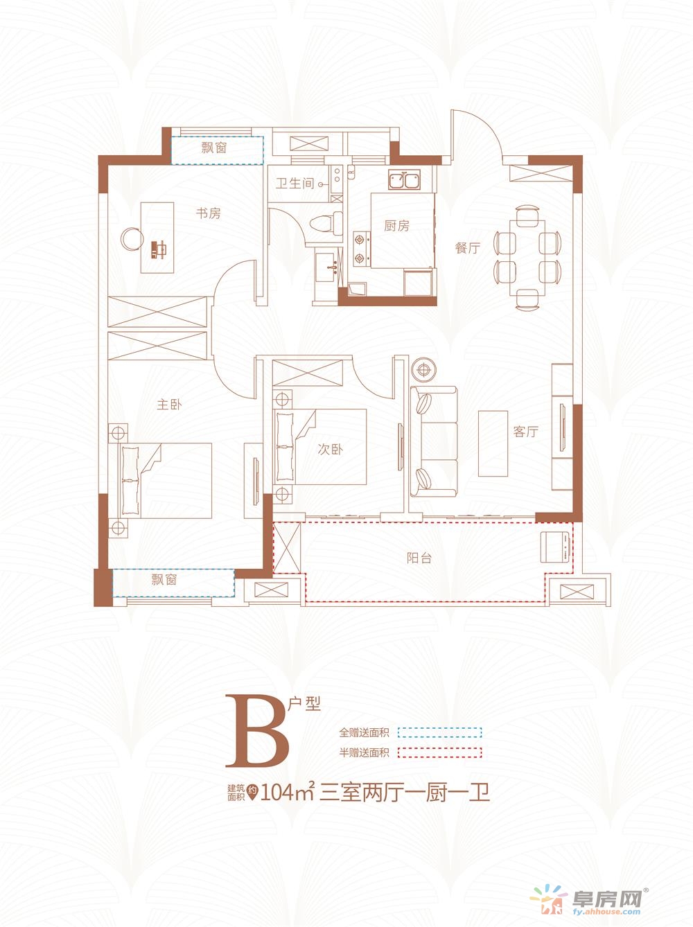 3室2厅1卫 104㎡