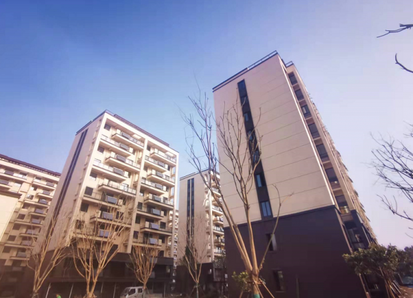 楼栋外立面为真石漆立面,颜色整体看起来比较亮丽;